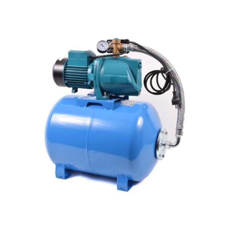 XJWm 10M 90/46 önfelszívó szivattyú 50 literes fekvő hidrofor tartállyal, azaz LEO XJWm 10M 50CL házi vízmű. Akár levegőt tartalmazó víz szivattyúzásához is. Használhatjuk ásott- vagy fúrt kutakból való víz-, esővíz szivattyúzáshoz, öntözéshez, locsoláshoz, öntözőrendszerhez.