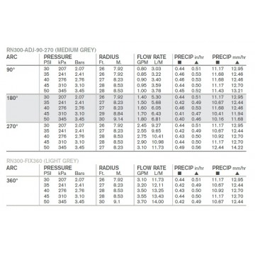 Minden Rotátor fúvókának egyedi színkódja van a könnyebb beazonosíthatóság miatt. Ezzel együtt a fúvóka tetején megtalálhatja a típusszámot és a szögbeállítás intervallumát is. A többsugaras fúvóka lassú intenzitással, jobban és egyenletesebben öntöz, még szeles időjárásban is.