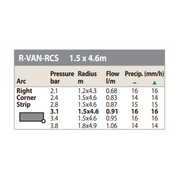 A Rain Bird R-VAN Rotary, Rotátor fúvóka régóta várt megoldás volt az öntöző szakmában. Megoldást jelent mindazok számára, akik kertjében gyenge a víznyomás és kevés a vízhozam vagy kis és nagy füves területeket egyszerre szeretnének öntözni. A Rain-Bird rotátor fúvóka igazán egyedire sikerült, öntözési szöge 45-270fok között állítható. Az első rotátor fúvóka, melynek beállításához semmilyen szerszám sem szükséges.