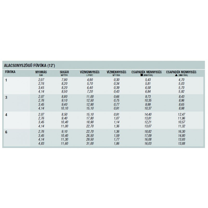- Vízsugár kilépési szöge: normál 26fok és alacsony szögű 12fok