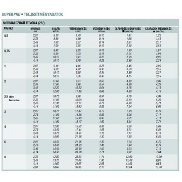 - Kijuttatott vízmennyiség: 1,7-35,96 liter/perc
