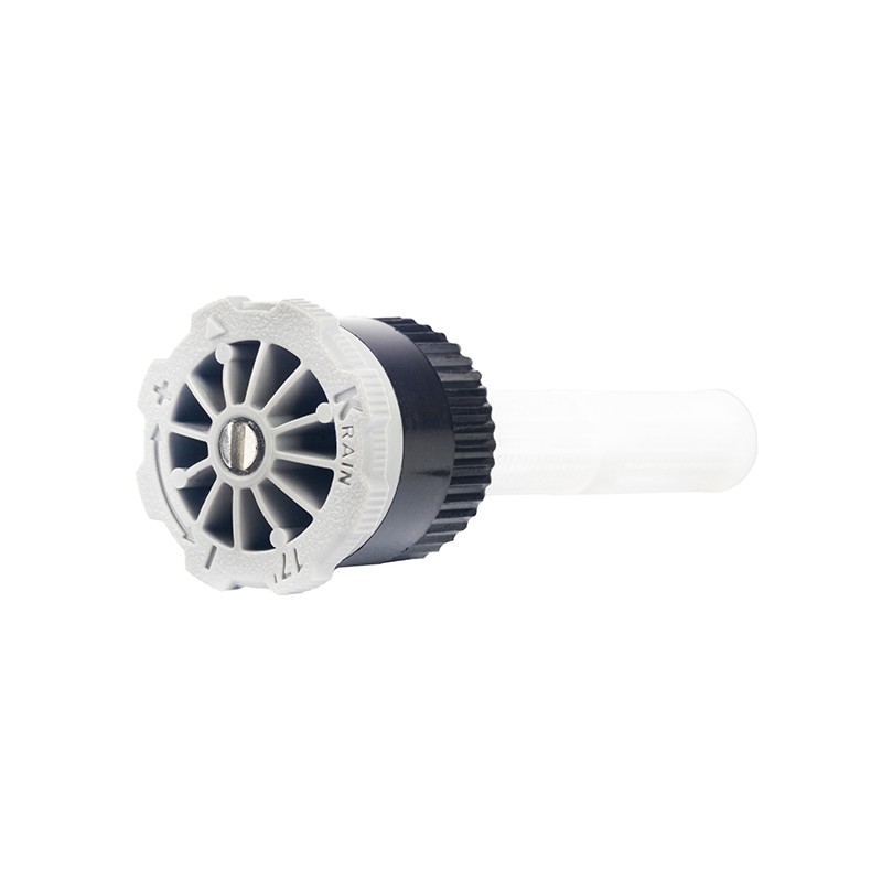 A K-Rain KVF-HE Spray Fúvóka kis-, közepes füves területek öntözésére és gyepsávok locsolására használható. A legtöbbször használt szórófej fajta. Olcsó, könnyen beállítható, az öntözési kép pontosan a füves terület széleihez igazítható. Tervezése során további szempont volt, hogy a fúvóka viszonylag nagy vízcseppeket juttasson ki a fű felületre, így öntözés közben jobban ellen tud állni a gyengébb szélmozgásnak.