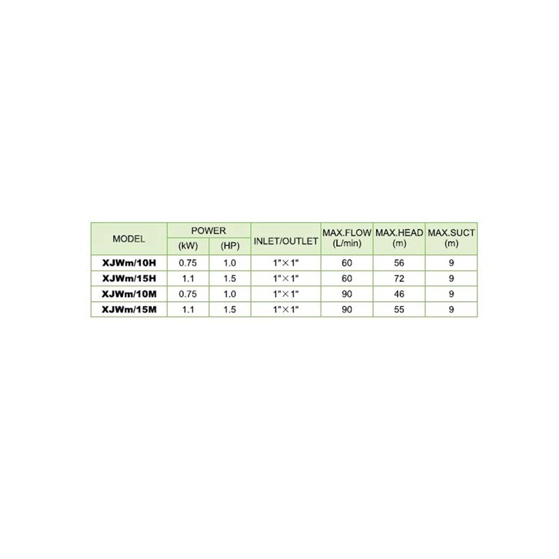 Leo XJWm 10M egyfázisos önfelszívó elektromos kerti szivattyúk úgy lettek tervezve, hogy akár levegőt tartalmazó víz szivattyúzására is alkalmasak. Használhatjuk ásott kutakból vagy fúrt kutakból való víz kiemelésére, esővíz szivattyúzásához, öntözéshez.